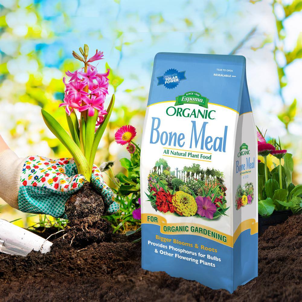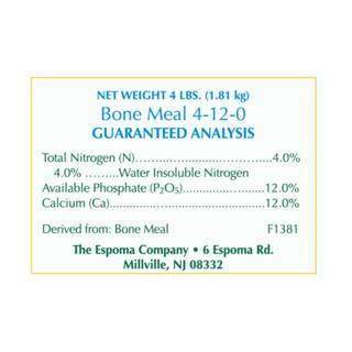 Espoma Bone Meal is an all natural organic source of Nitrogen and Phosphorus. Bone Meal helps develop sturdy root systems and promotes plant growth and is ideal as a supplement for bulbs, flowers and roses. 1 lb. equals 2.25 cups of all natural fertilizer.