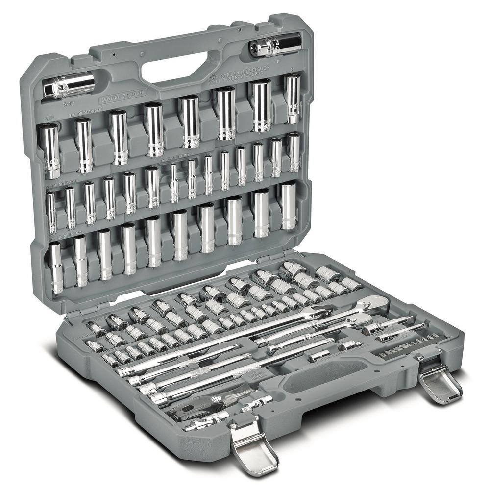 The Ingersoll Rand 101 piece 1/4 and 3/8-inch drive master mechanic's socket set combines the most commonly used technician tools in a comprehensive all-in-one collection. The set includes 76 sockets, 2 each 72 tooth ratchets 23 tools and accessories. All Ingersoll Rand master mechanics tool sets a durable, high-quality storage case that breaks down with removable hinges for easy storage in toolbox drawers and reassembles in seconds for transporting tools to the job site. Torx is a registered trademark of Acument Intellectual Properties LLC