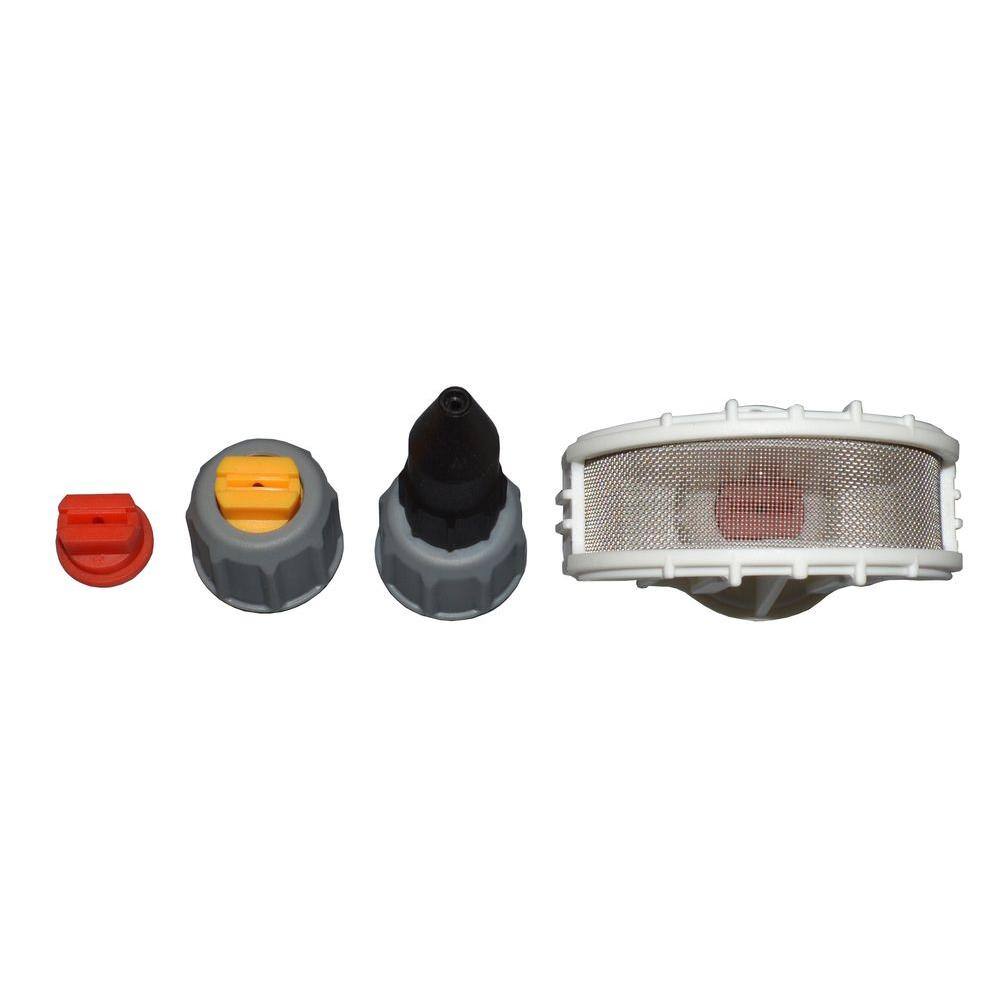 Multiple nozzles included for ultimate versatility: poly adjustable, flat fan (2)